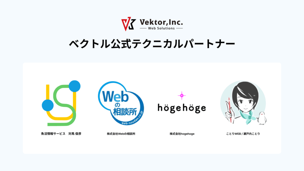 Lightning や VK Blocks をはじめとするベクトル製品の活用だけでなく、WordPressやサーバーに詳しいプロに任せて健全なサイト運用をしましょう。こちらのページでは ベクトル公式提携のテクニカルパート … 続きを読む WordPressを活用したウェブ制作・運用のプロフェッショナル・パートナー